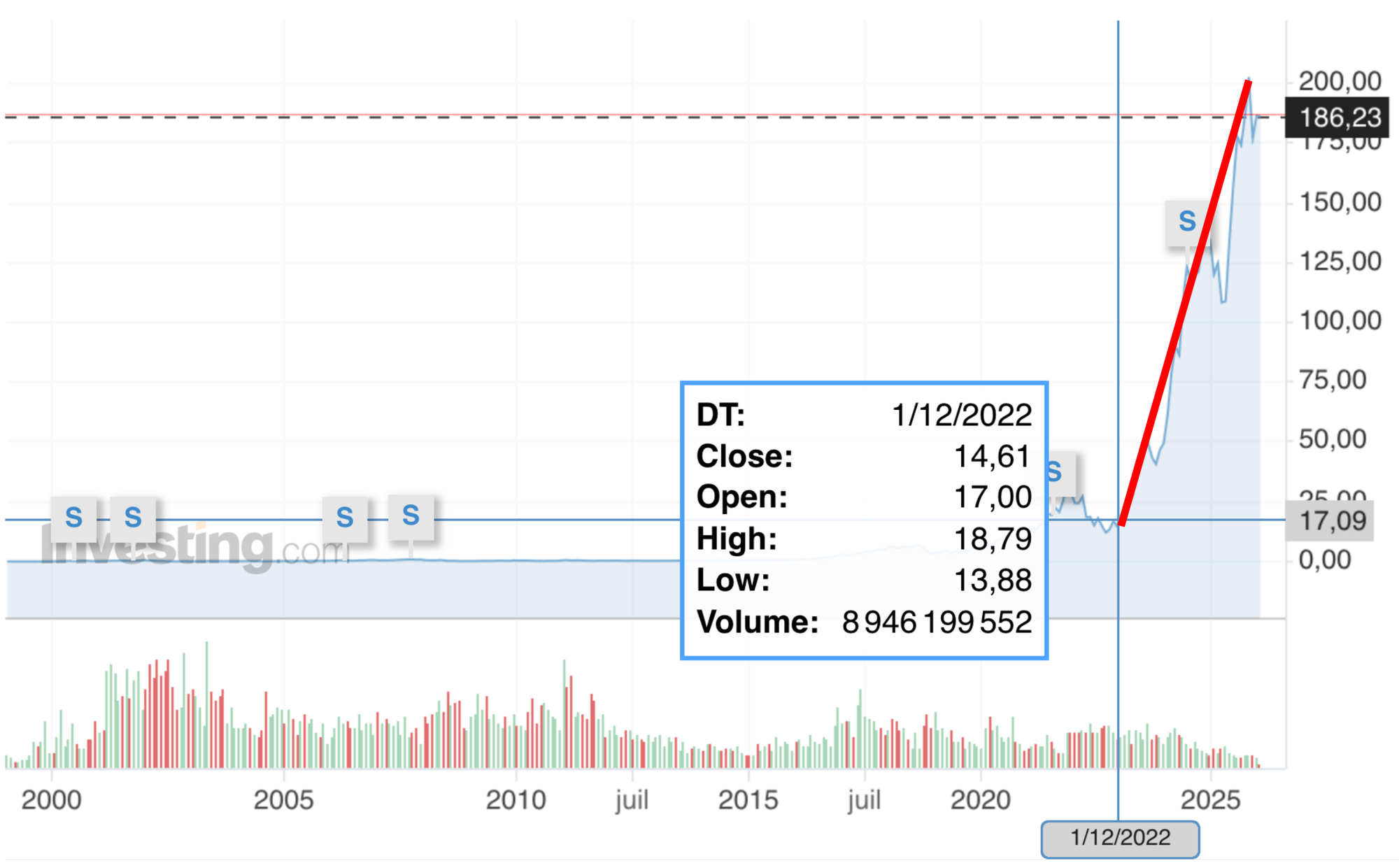 Se dice que una imagen vale más que mil palabras. Desde la aparición de ChatGPT, el 30 de noviembre de 2022, Nvidia (3) y Oracle (4) han registrado un crecimiento bursátil exponencial.